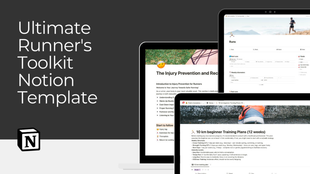 Unlock your full potential as a runner with the "Ultimate Runner's Toolkit." This all-in-one bundle combines three of our best-selling Notion templates to offer you a comprehensive solution for your running journey.